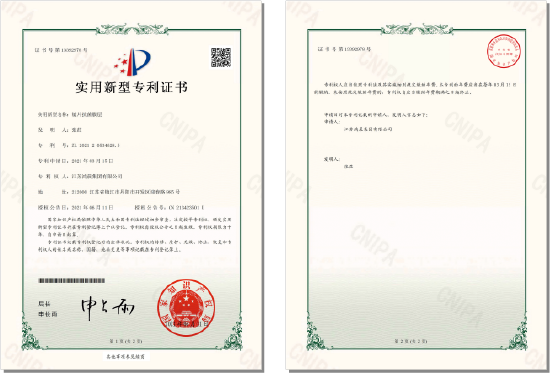 鴻晨集團申報的“鏡片抑菌膜層”創(chuàng)新成果獲國家知識產(chǎn)權(quán)局授予的實用新型專利證書。
